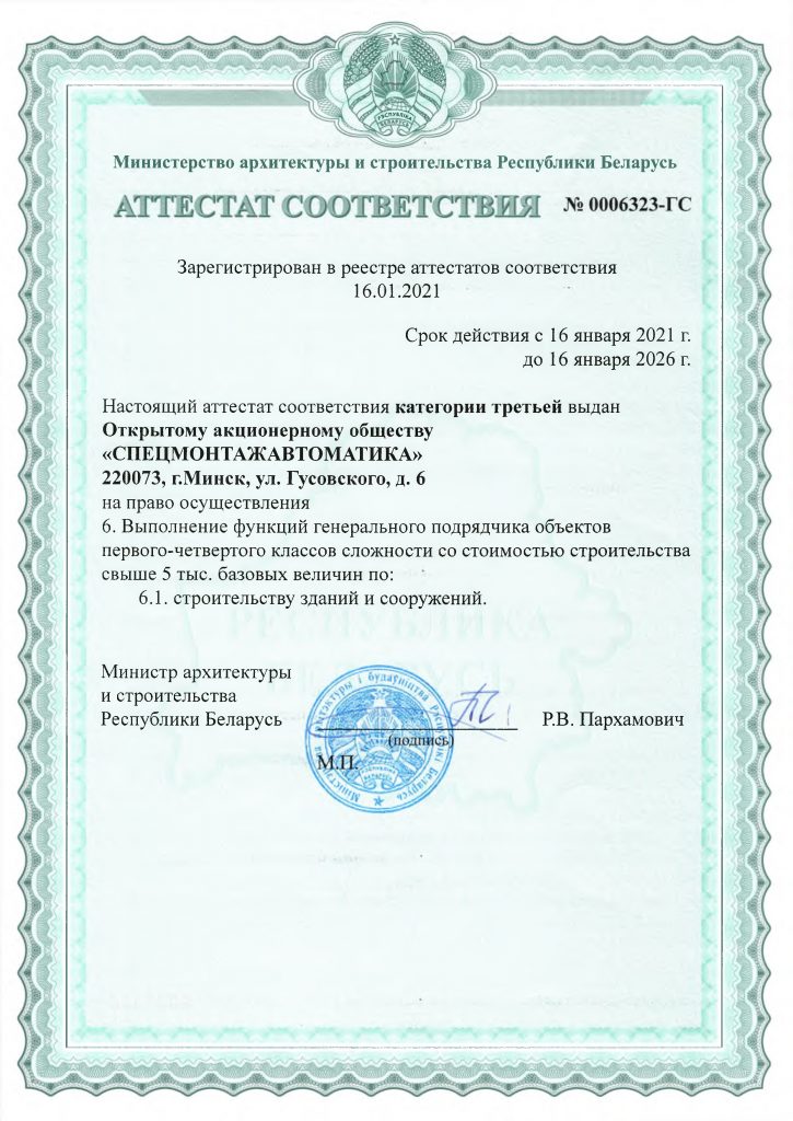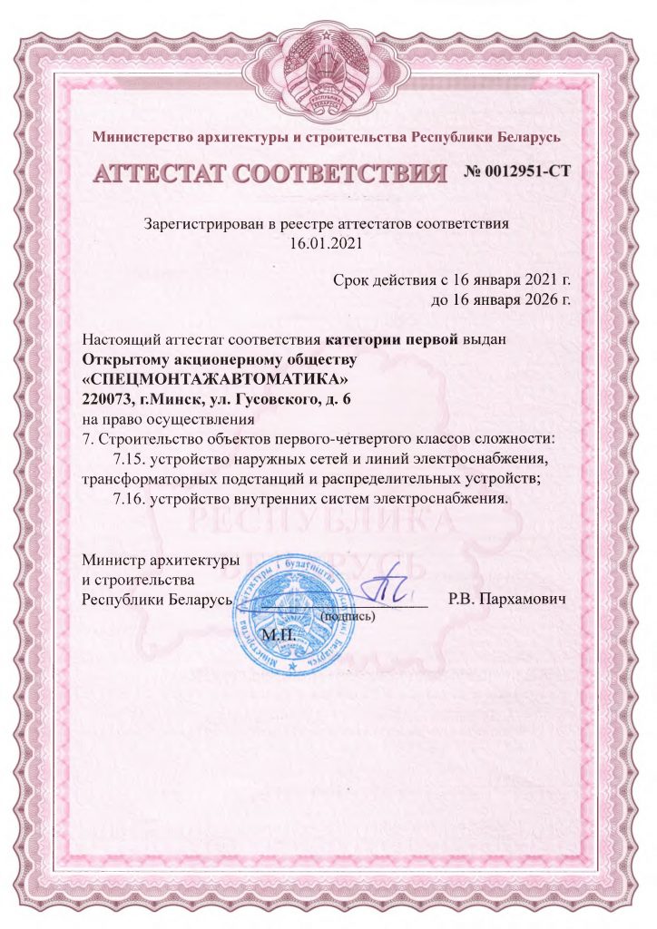 ОАО «СПЕЦМОНТАЖАВТОМАТИКА» также располагает собственной аккредитованной лабораторией для входного контроля и испытаний, что гарантирует качество и надёжность всех предоставляемых нами решений. Уделяем особое внимание обучению технического и обслуживающего персонала на объектах наших клиентов, обеспечивая тем самым необходимый уровень компетенции для эксплуатации систем безопасности. Выбирая ОАО «СПЕЦМОНТАЖАВТОМАТИКА», вы получаете не только качественное оборудование, но и полный цикл сервисных услуг, основанных на передовых технологиях и многолетнем опыте работы в сфере безопасности.