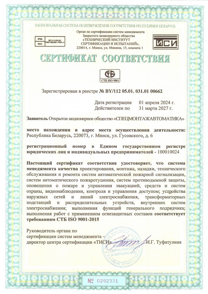 ОАО «СПЕЦМОНТАЖАВТОМАТИКА» предлагает услуги по внедрению систем безопасности: